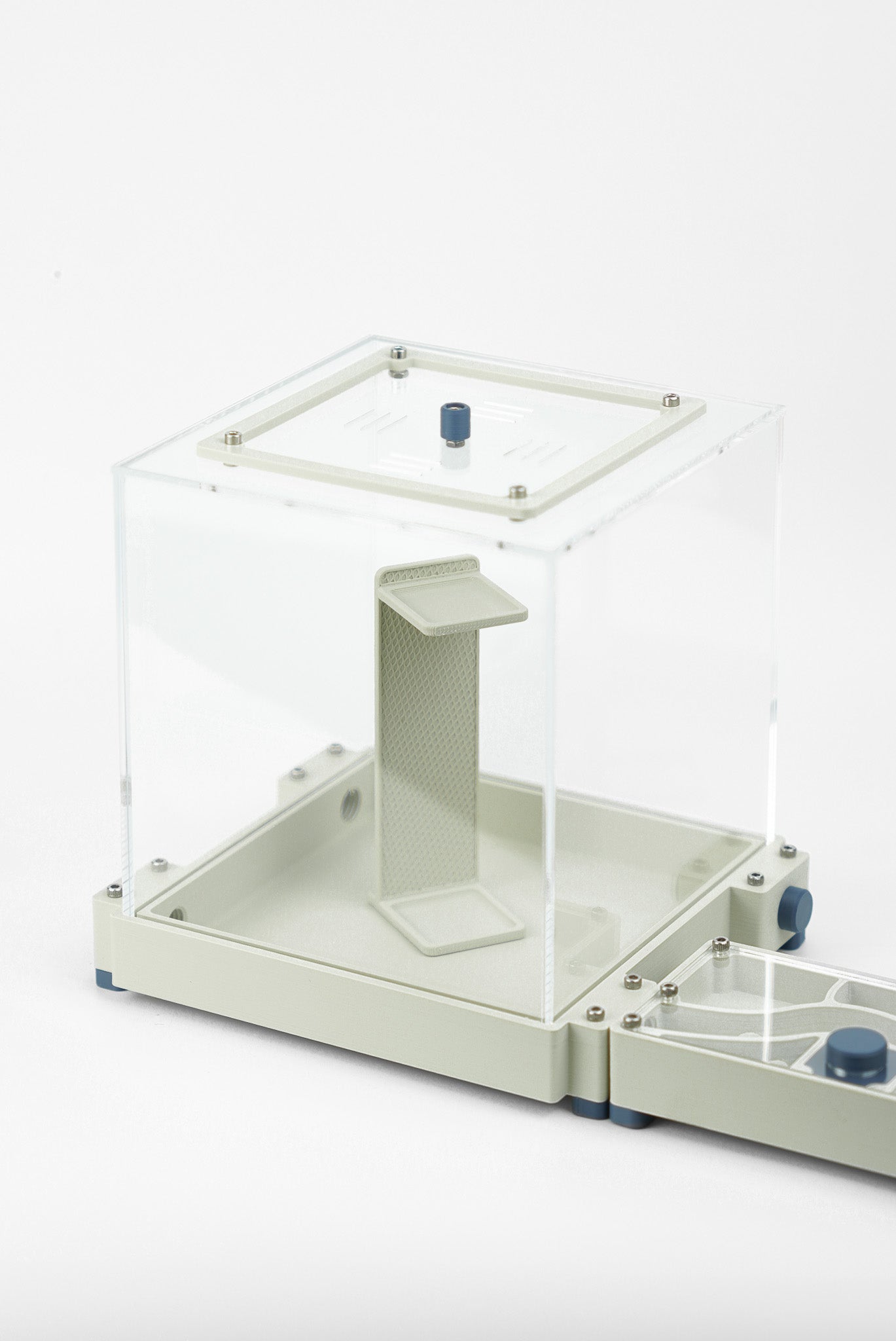 Le système de connexion des modules et aires de chasse est simple et efficace. Les pieds se remplacent à l’ajout d’un module. Ils permettent ainsi de connecter deux, trois ou quatre modules ensemble et de bien les lier les uns aux autres afin que la connexion soit sécurisée et que les fourmis ne puissent pas s’échapper.